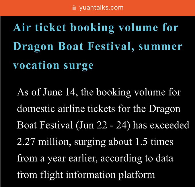 Flight bookings in China for the Dragon Boat Festival and summer vacation are on the rise. [/s2If]