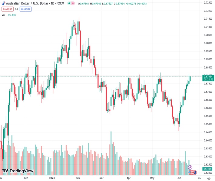 AUDUSD currently trading at 0.6793 at the time of writing. Pair opened at 0.6767 and is trading with a change of 0.38 % .
