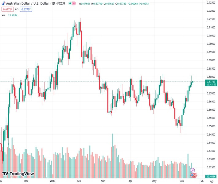 AUDUSD currently trading at 0.6768 at the time of writing. Pair opened at 0.6767 and is trading with a change of 0.01% % .