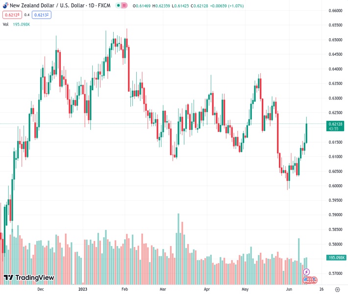 NZDUSD currently trading at 0.6213 at the time of writing. Pair opened at 0.6149 and is trading with a change of 1.04 % .
