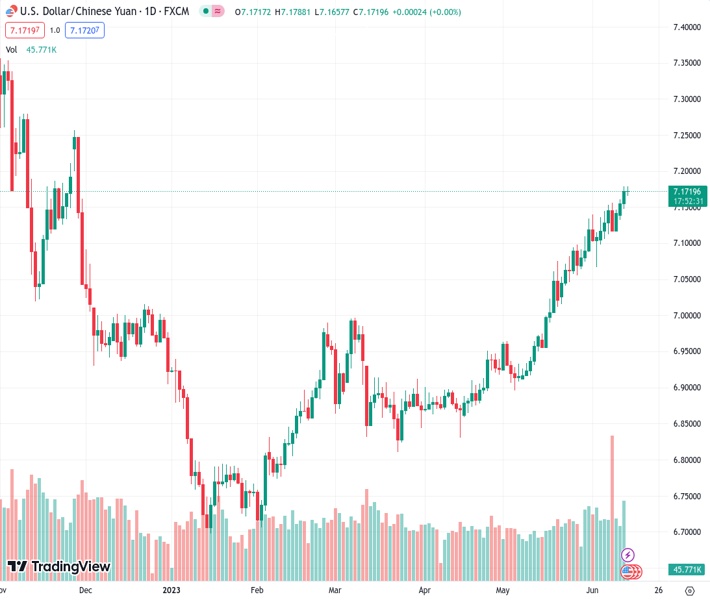 The USDCNH exchange rate of 7.17274 has been fluctuating at its highest levels since late November 2022, but has recently experienced a slight drop. Nehcap’s perspective is that a retracement can be anticipated.