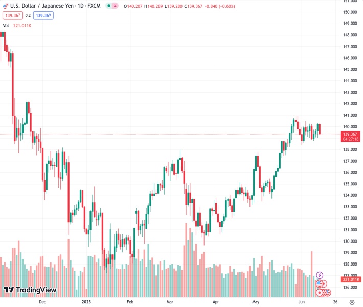 USDJPY currently trading at 139.35 at the time of writing. Pair opened at 140.22 and is trading with a change of -0.62 % .