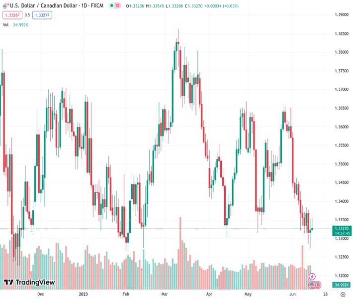 As the USD Index has experienced a slowdown in its upward movement, the USDCAD currency pair at 1.33289 encountered strong resistance near the 1.3350 level.