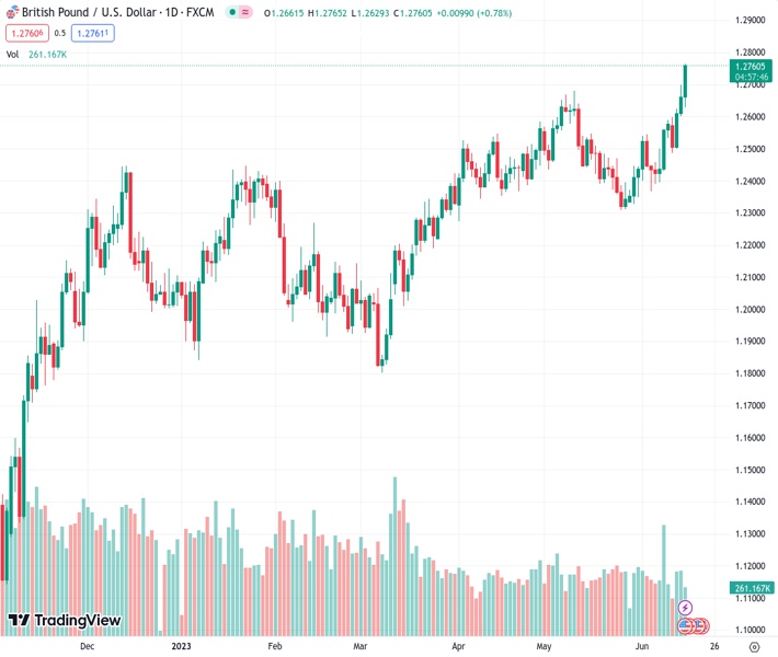 The GBP/USD currency pair, currently trading at 1.27597, is approaching the 1.2800 mark due to clues from the Bank of England indicating higher interest rate expectations and a weaker US dollar.