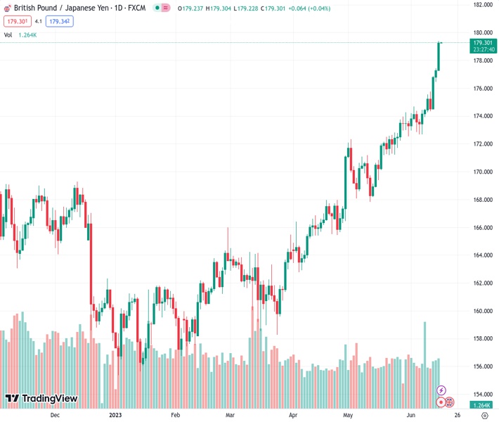 • On Thursday, the GBP/JPY rocketed to a multi-year high of 179.40 for the first time since December 2015.