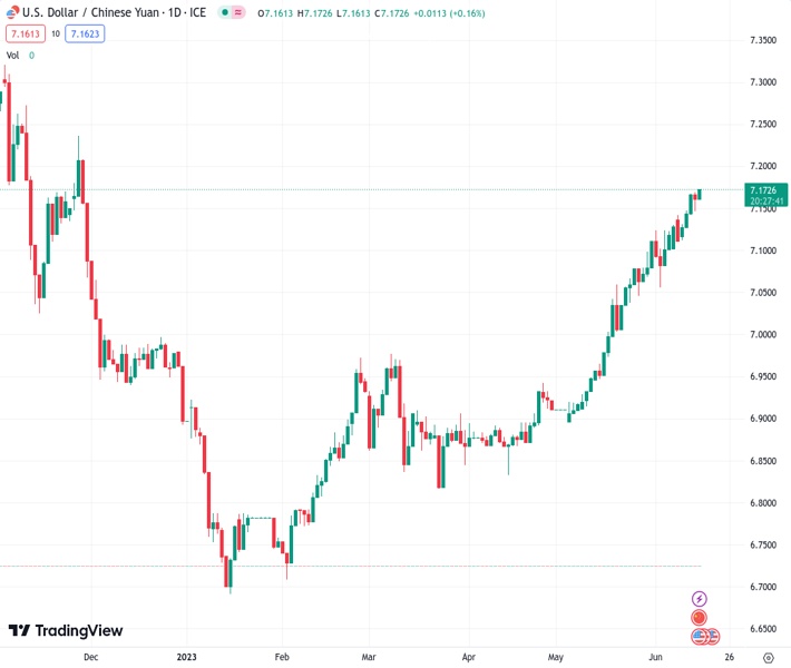 The US dollar to Chinese yuan exchange rate is currently at 7.18046, with the fixed rate at 7.1489 compared to the previous day’s rate of 7.1631.