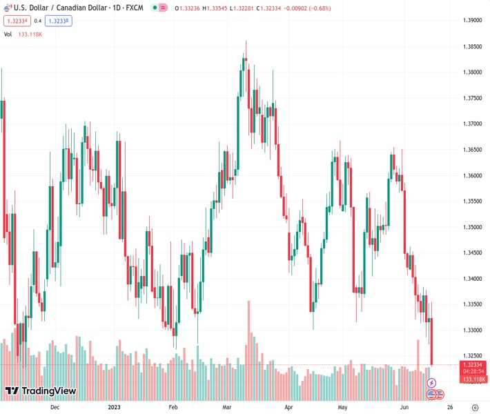 USDCAD currently trading at 1.3234 at the time of writing. Pair opened at 1.3324 and is trading with a change of -0.68 % .