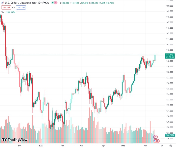 USDJPY currently trading at 141.15 at the time of writing. Pair opened at 140.06 and is trading with a change of 0.78 % .