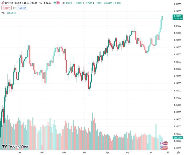 GBP/USD trades with solid gains on Friday, set to finish its weekly rise in six months after UK economic data supported additional Bank of England (BoE) tightening. The US Federal Reserve (Fed) keeping rates unchanged was a headwind for the US Dollar (USD). Hence, the GBP/USD is trading at 1.2833, up 0.40%, after hitting a low of 1.2768.
