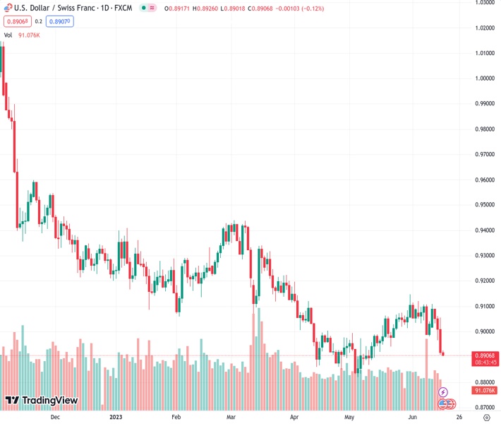 USDCHF currently trading at 0.8915 at the time of writing. Pair opened at 0.8919 and is trading with a change of -0.04 % .