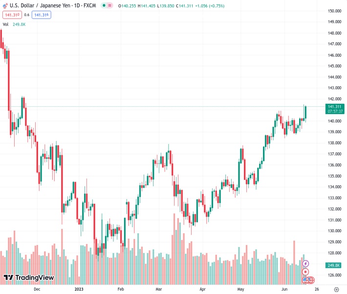 MUFG suggests that conditions are forming that will lead to a decline in the value of the Japanese yen, with the USDJPY currency pair currently at 141.302.
