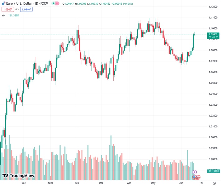 EURUSD currently trading at 1.0951 at the time of writing. Pair opened at 1.0945 and is trading with a change of 0.05 % .