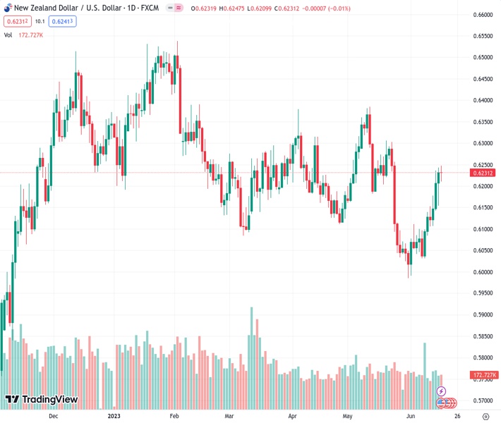 - NZD/USD traded neutral at the 0.6230 area on Friday but set a 1.70% weekly gain.,