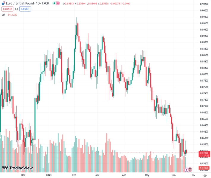The EURGBP currency pair at a rate of 0.85541 is finding it difficult to make a significant comeback from the low point achieved earlier this week.