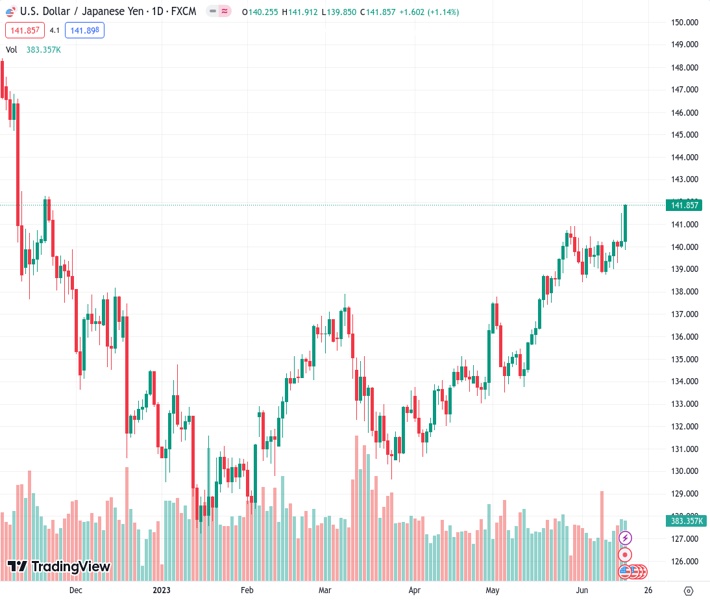 USDJPY currently trading at 141.86 at the time of writing. Pair opened at 140.35 and is trading with a change of 1.08 % .