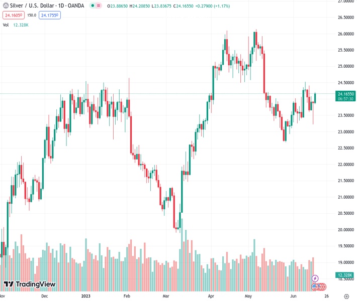 Silver price (XAG/USD) has shifted its auction comfortably above the crucial resistance of $24.00 in the early New York session. The white metal has got strengthened as investors have found clarity about Federal Reserve’s (Fed) interest rate peak for now.