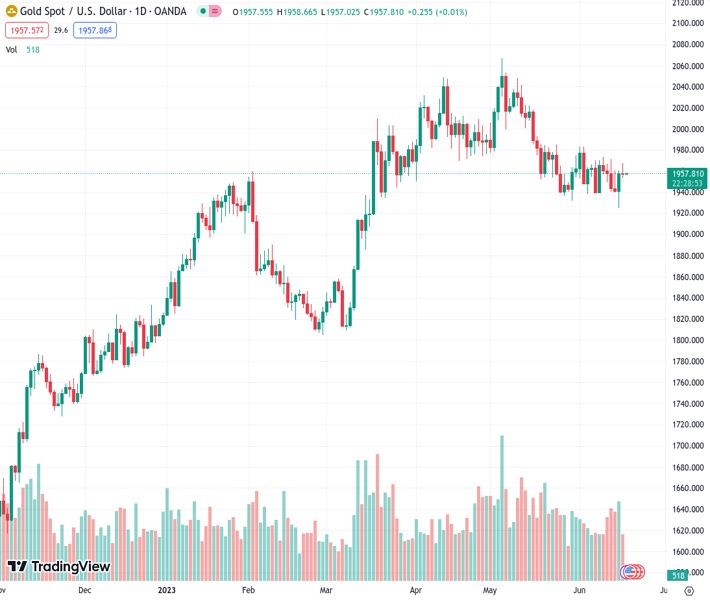 XAUUSD currently trading at 1957.18 at the time of writing. Pair opened at 1957.98 and is trading with a change of -0.04% % .