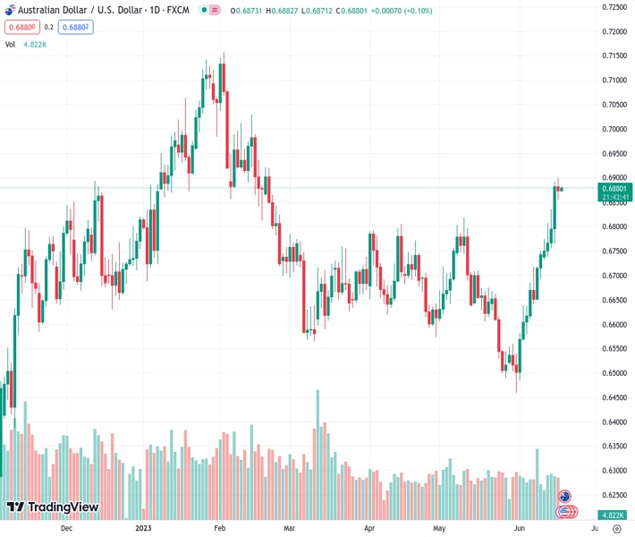 AUDUSD currently trading at 0.6882 at the time of writing. Pair opened at 0.6876 and is trading with a change of 0.09% % .