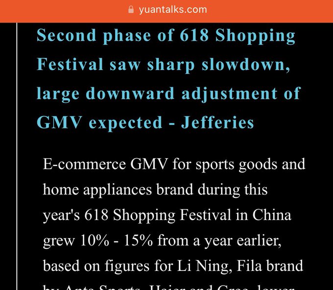 According to Jefferies, the second phase of China’s 618 Shopping Festival has experienced a significant decrease in growth, with expectations of a major decrease in Gross Merchandise Volume (GMV). [/s2If]
