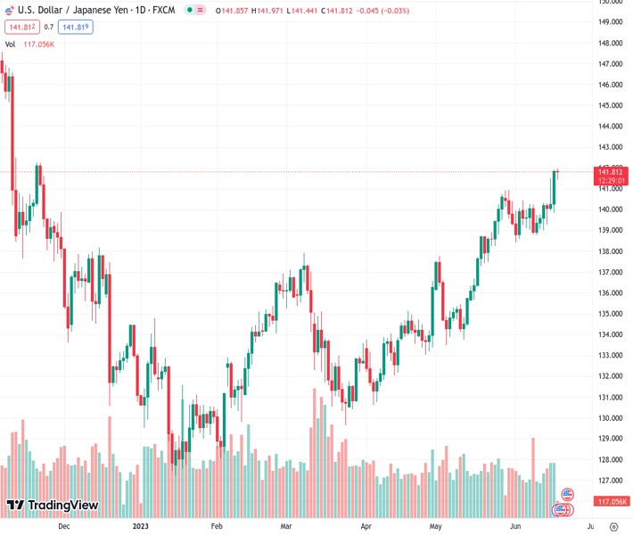 USDJPY currently trading at 141.85 at the time of writing. Pair opened at 141.86 and is trading with a change of -0.01 % .