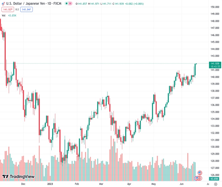 USDJPY currently trading at 141.89 at the time of writing. Pair opened at 141.86 and is trading with a change of 0.02 % .