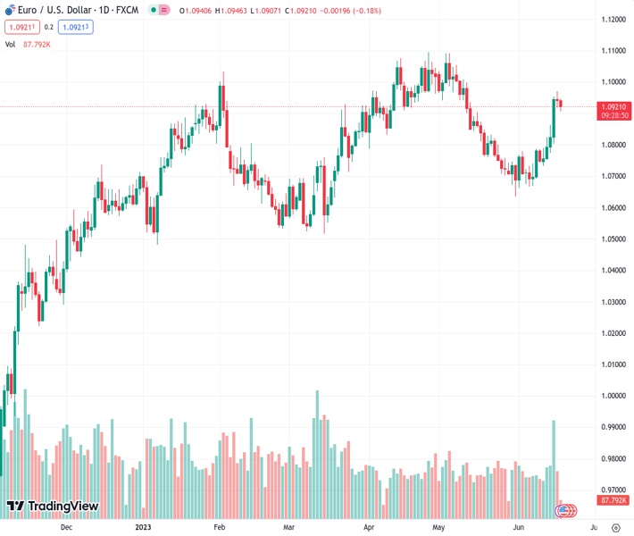 Scotiabank suggests that there may be a slight decline to the range of the mid-1.08s for EUR/USD, despite its current value being at 1.09186.