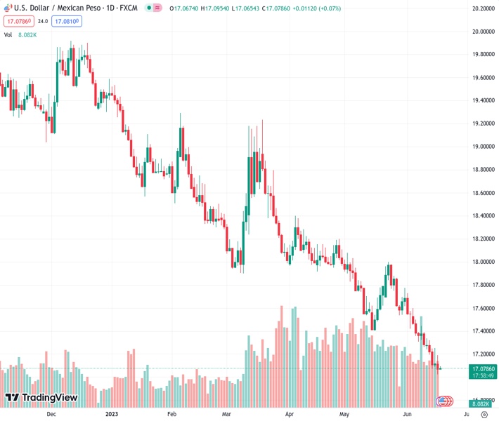 USDMXN currently trading at 17.0836 at the time of writing. Pair opened at 17.0738 and is trading with a change of 0.06 % .