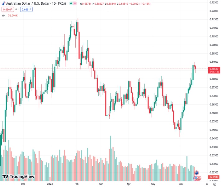 AUDUSD currently trading at 0.686 at the time of writing. Pair opened at 0.6876 and is trading with a change of -0.23 % .
