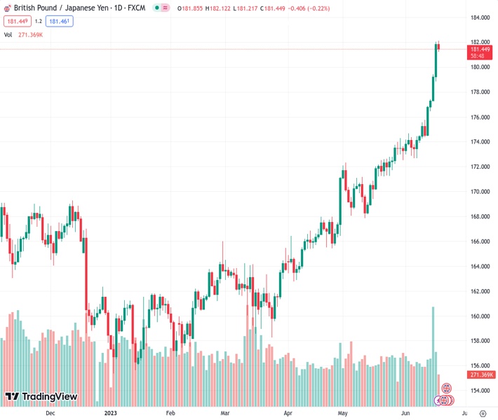 The bears are detecting exhausted bulls and advancing towards a kill at GBPJPY of 181.445.