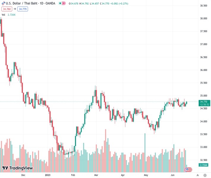 UOB predicts that there will be further consolidation in the short term for the USDTHB, which is currently at 34.7600.