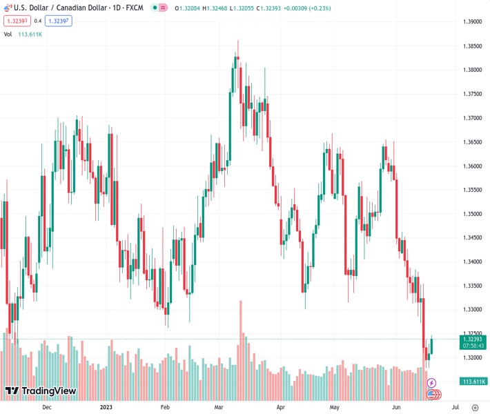 According to Scotiabank, there is a possibility of further decline in the future for the USDCAD currency pair, which is currently trading at 1.32368.