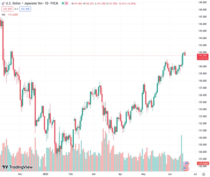 According to SocGen, there is slim possibility of FX intervention in USDJPY until it reaches 145. The current rate stands at 141.501.