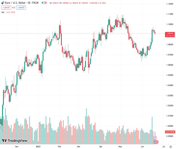 The EUR/USD currency pair is currently trading at 1.09122 and the bears seem to be in control, with their focus on the trendline support.