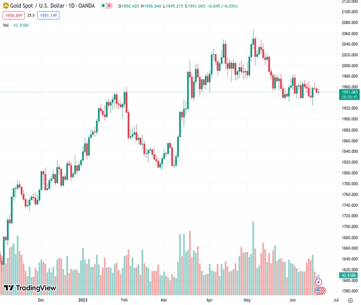The price of gold, represented by #XAUUSD, has remained steady above $1,950.00 due to the lackluster performance of the USD Index.