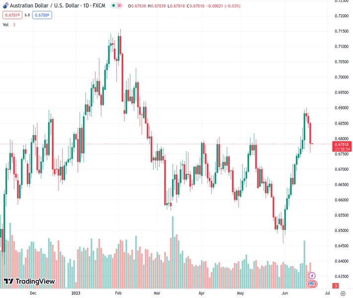 There is a minor correction taking place with the bulls for AUDUSD at 0.67875.