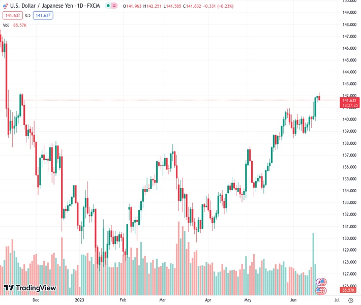 USDJPY currently trading at 142.11 at the time of writing. Pair opened at 141.97 and is trading with a change of 0.10% % .