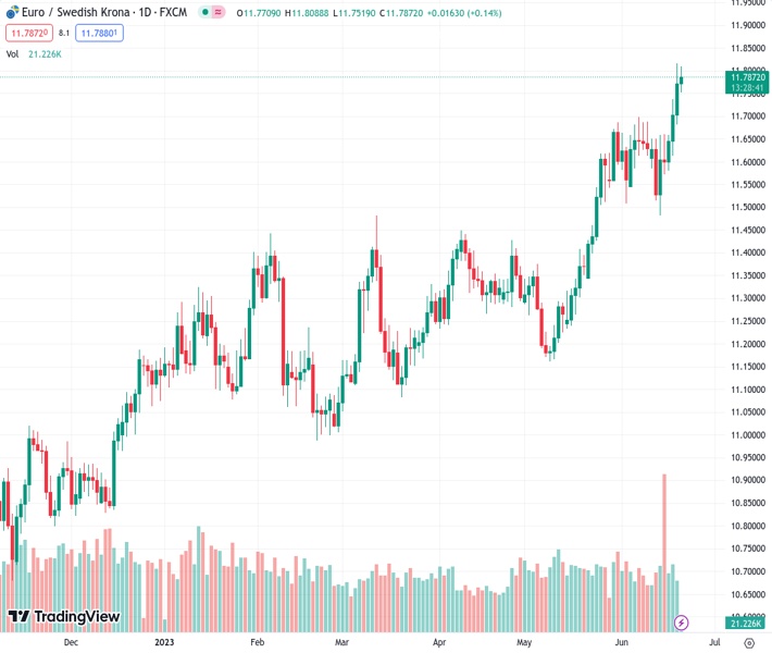 According to Danske Bank, the Swedish krona will maintain its weak position, as evidenced by the EURSEK exchange rate of 11.7917.