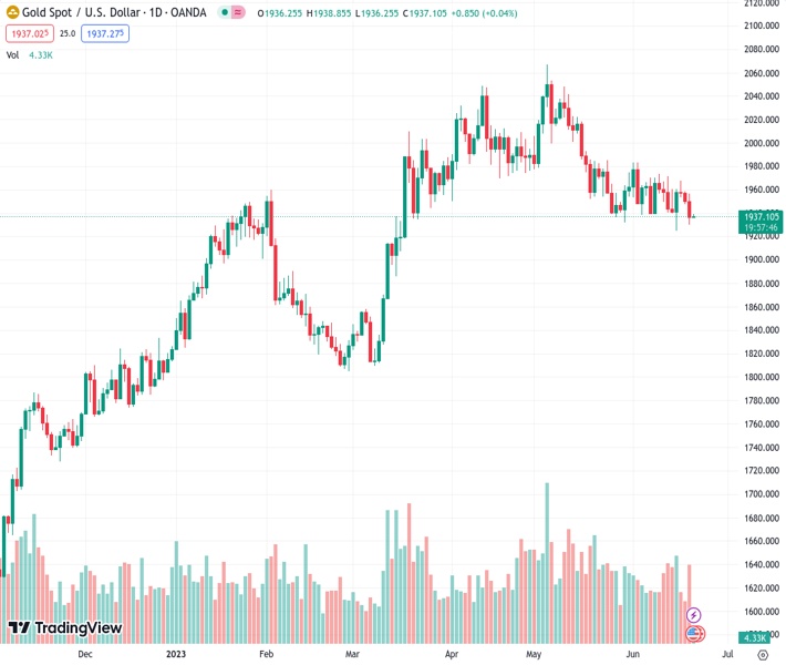 According to the report, the price of gold, currently at 1,936.94 in XAUUSD, is enduring downward pressure after a three-day trend of decline that included breaking through the support level of the 100-day moving average. The author, nehcap, anticipates an additional decline in value.