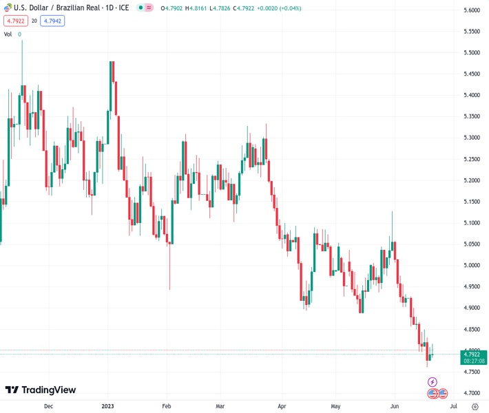 Commerzbank predicts that the recent surge of the Brazilian real, which has reached US$4.79450, will lose momentum and decline in the following months.