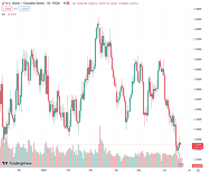 USDCAD currently trading at 1.3224 at the time of writing. Pair opened at 1.3235 and is trading with a change of -0.08 % .