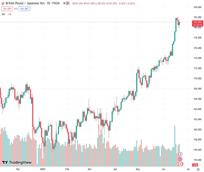 GBPJPY currently trading at 181.08 at the time of writing. Pair opened at 180.57 and is trading with a change of 0.28 % .