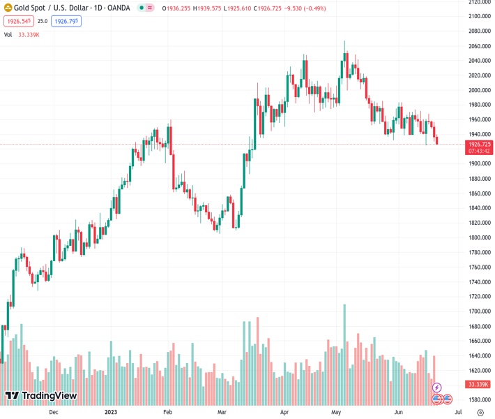 XAUUSD currently trading at 1929.89 at the time of writing. Pair opened at 1936.4 and is trading with a change of -0.34 % .