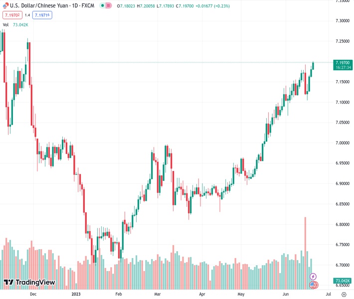 USDCNH currently trading at 7.1972 at the time of writing. Pair opened at 7.1824 and is trading with a change of 0.21% % .