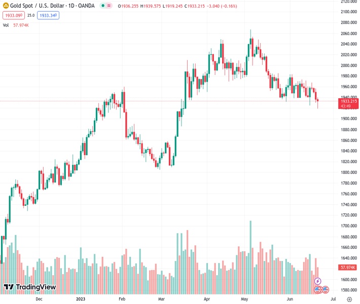 The value of gold, as represented by XAUUSD at 1,932.89, is being affected by important levels of influence.