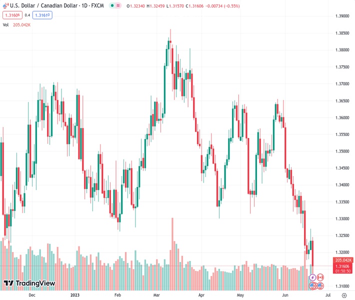 The Bank of Canada minutes have come out recently and the central bank agreed that fresh economic data would determine the need for further rate hikes. Nevertheless, the markets are pricing in a roughly 72% chance that the central bank will raise its policy rate by 25 basis points next month. Consequently, the CAD is bid while the Greenback is on the backfoot on a dovish Federal Reserve bias. This leaves the outlook bearish for USD/CAD as shown on the charts as follows: