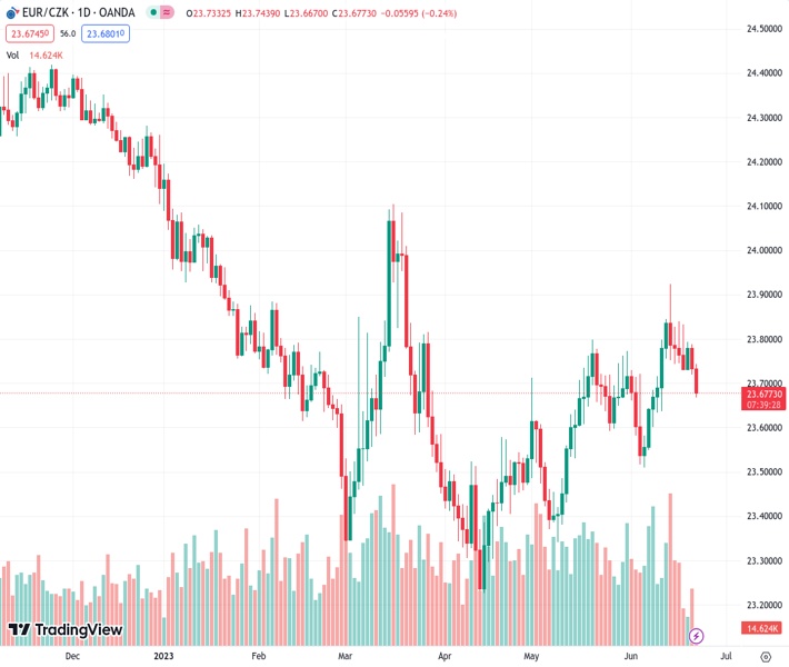 According to ING, the EURCZK is expected to drop below 23.70 in the upcoming days, currently standing at 23.6766.
