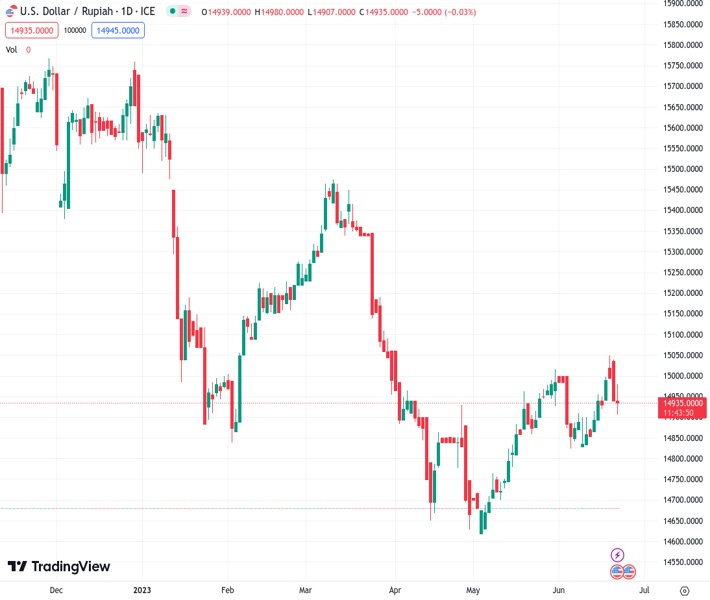 According to TDS, the Rupiah is expected to increase in value in the upcoming weeks and months, with USDIDR at 14,935.0.