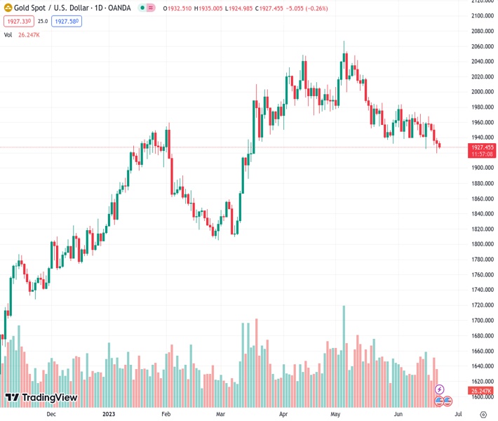 Confusion over the Federal Reserve’s future interest rate policy has caused the price of gold to become erratic, with XAUUSD currently at 1,927.83 and hovering around $1,930.00.