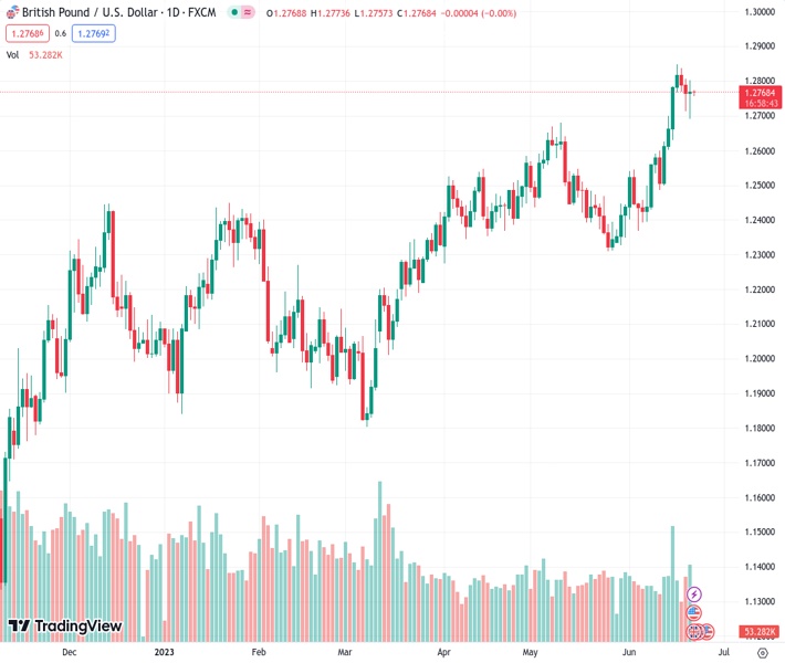 Investors on Wednesday ramped up bets for a more aggressive policy tightening by the BoE following the release of hotter-than-expected UK consumer inflation data, which defied expectations and held steady at the 8.7% YoY rate in May. Moreover, core CPI – excluding volatile energy, food, alcohol and tobacco prices – accelerated from 6.8% in April to 7.1% or the highest rate since March 1992. This comes on the back of the upbeat UK jobs data released last week, which showed near-record wage growth and forced investors to increase their forecast for peak interest rates to 6.01% by February 2024.