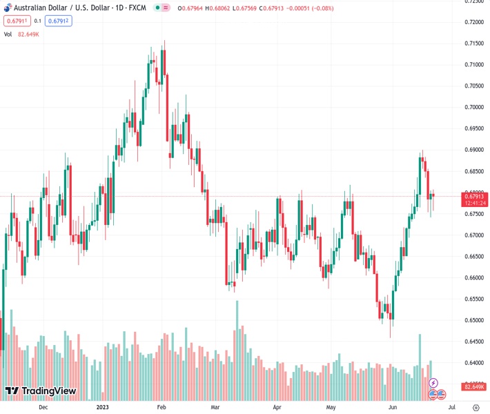 AUDUSD currently trading at 0.6788 at the time of writing. Pair opened at 0.6797 and is trading with a change of -0.13 % .